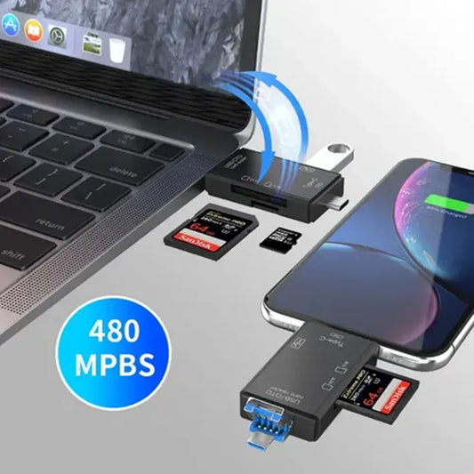 6 en 1 📲 Lector De Memorias Sd Micro Sd Usb C Otg 2.0 Para Celular Pc Negro